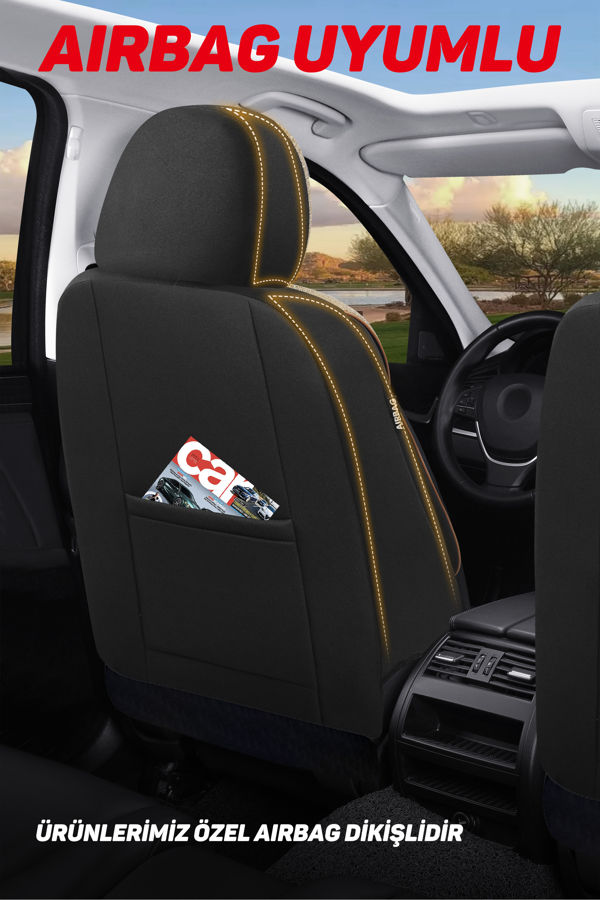 - ** AIRBAG Güvenlik Önceliğimiz:** Kılıflarımız, koltuk yanlarında bulunan Airbag (Hava Yastığı) çıkışları için özel dikiş teknolojisi ile üretilmiştir. Bu sayede olası bir kaza anında hava yastıklarının sorunsuz açılmasını sağlar, güvenliğinizden ödün vermez.