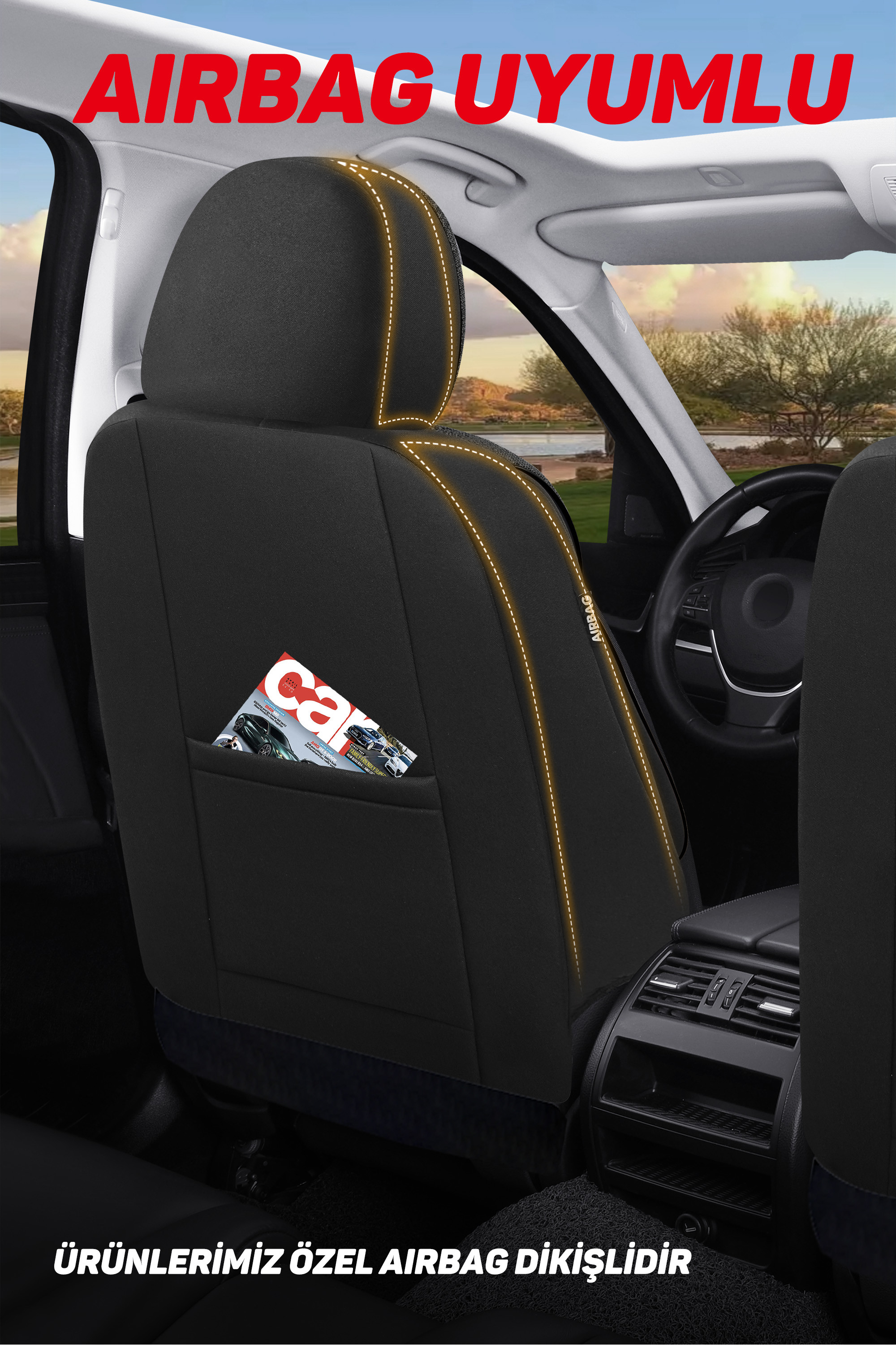 - ** AIRBAG Güvenlik Önceliğimiz:** Kılıflarımız, koltuk yanlarında bulunan Airbag (Hava Yastığı) çıkışları için özel dikiş teknolojisi ile üretilmiştir. Bu sayede olası bir kaza anında hava yastıklarının sorunsuz açılmasını sağlar, güvenliğinizden ödün vermez.