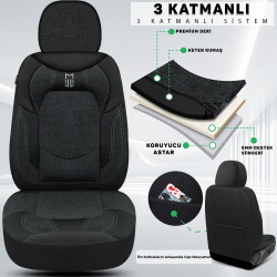 Minderland Eren Serisi Her Araca Uyumlu Oto Koltuk Kılıfı Tam Set Keten / Siyah