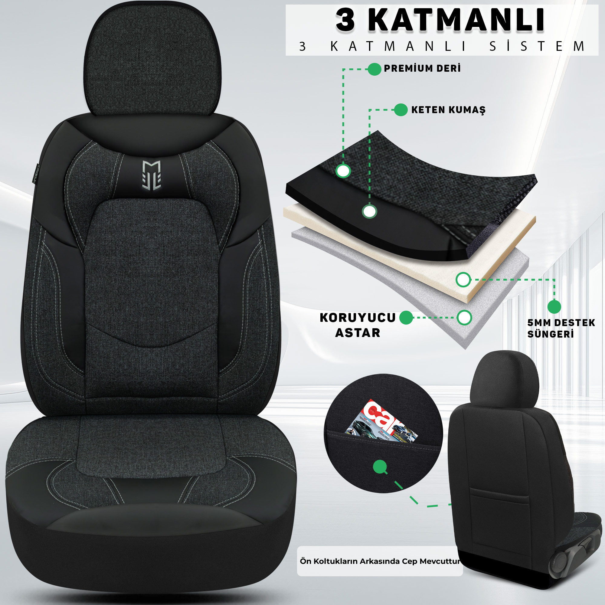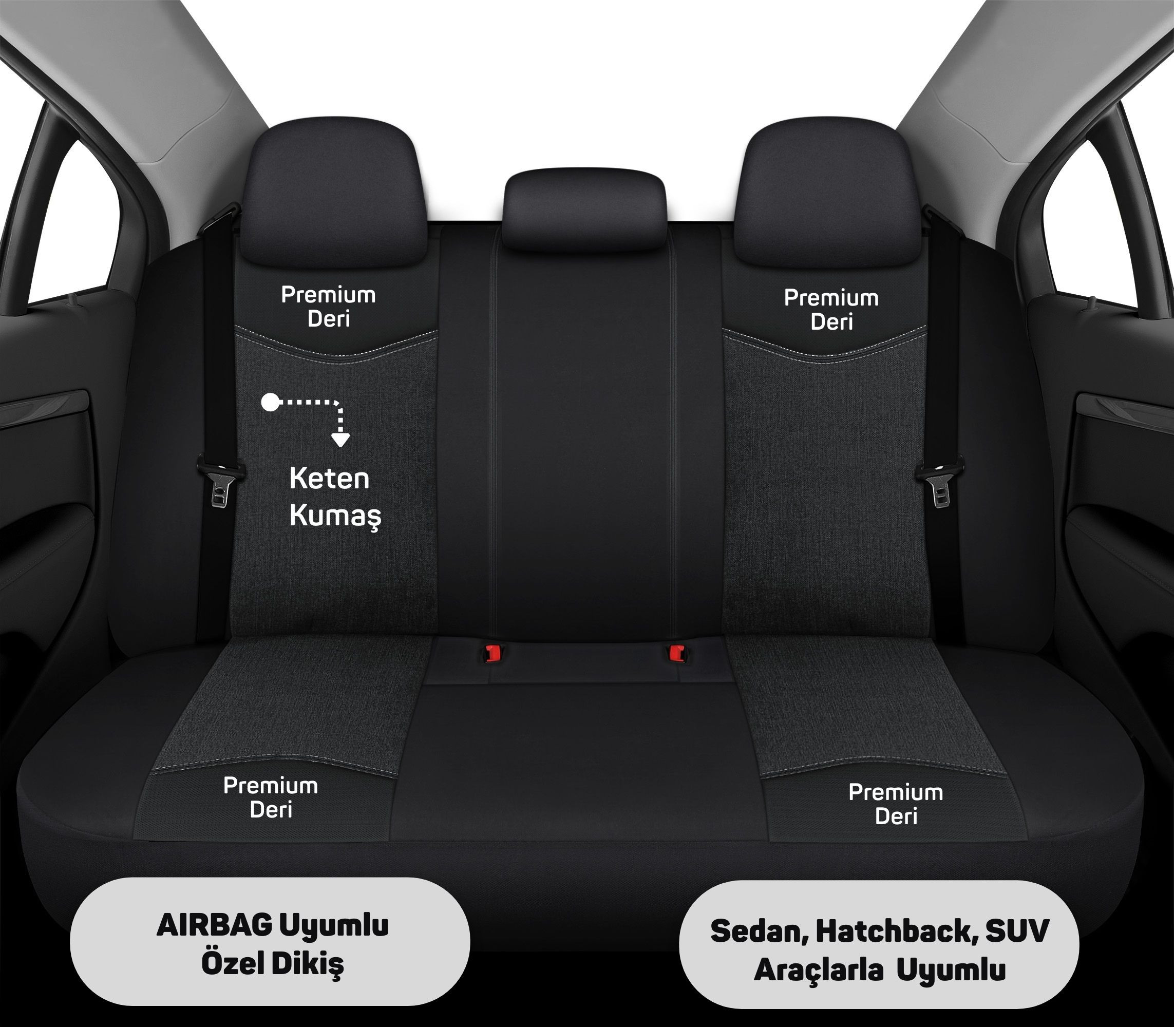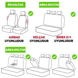 (Koltuk yanlarında AIRBAG bulunan araçlar için özel dikiş yapısı ile tasarlanmıştır.)