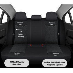 • Eren Serisi, Her Araca Uyumlu Oto Koltuk Kılıfı, Tam Set, Keten-Deri