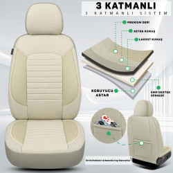• İz Serisi, Her Araca Uyumlu Oto Koltuk Kılıfı, Tam Set, Keten-Deri