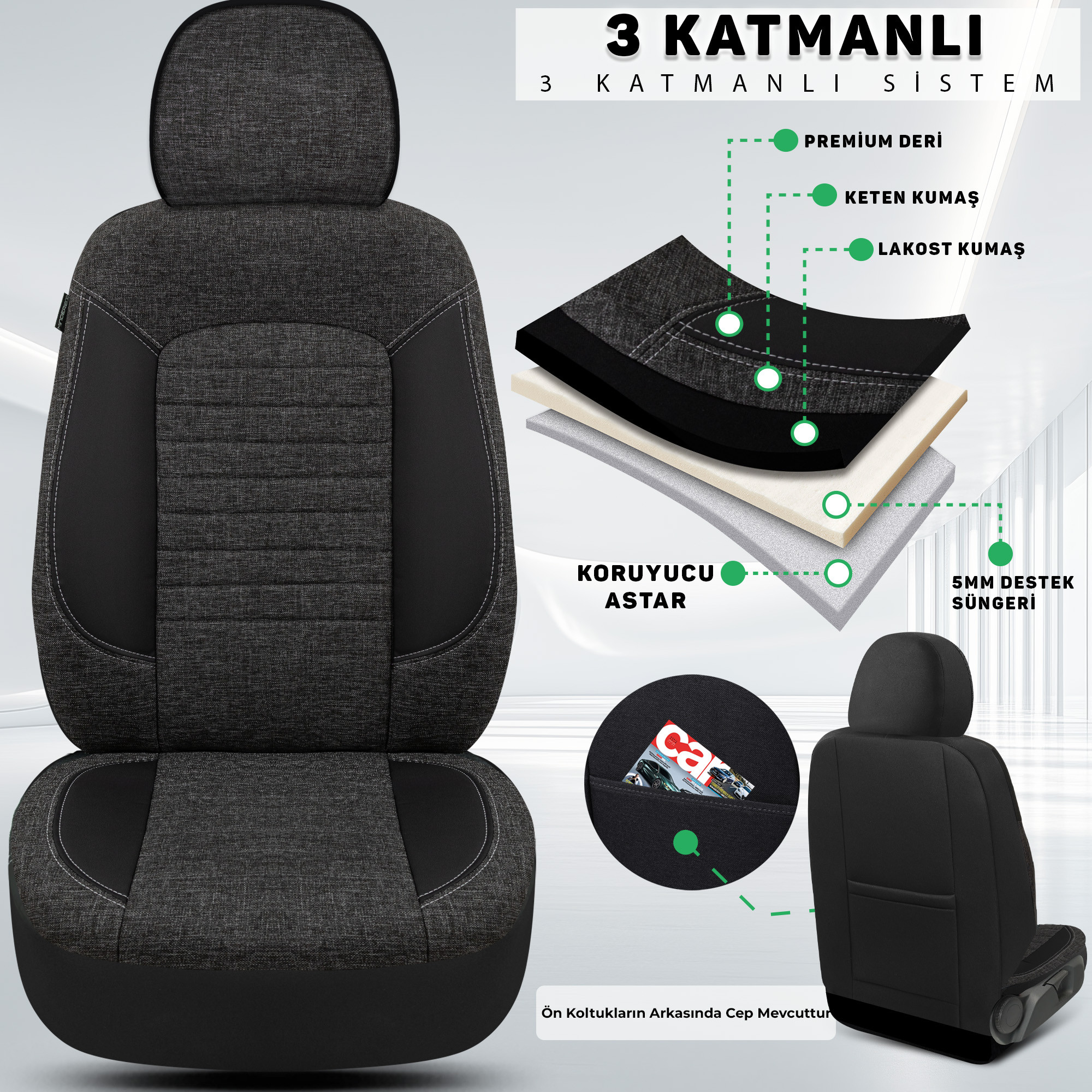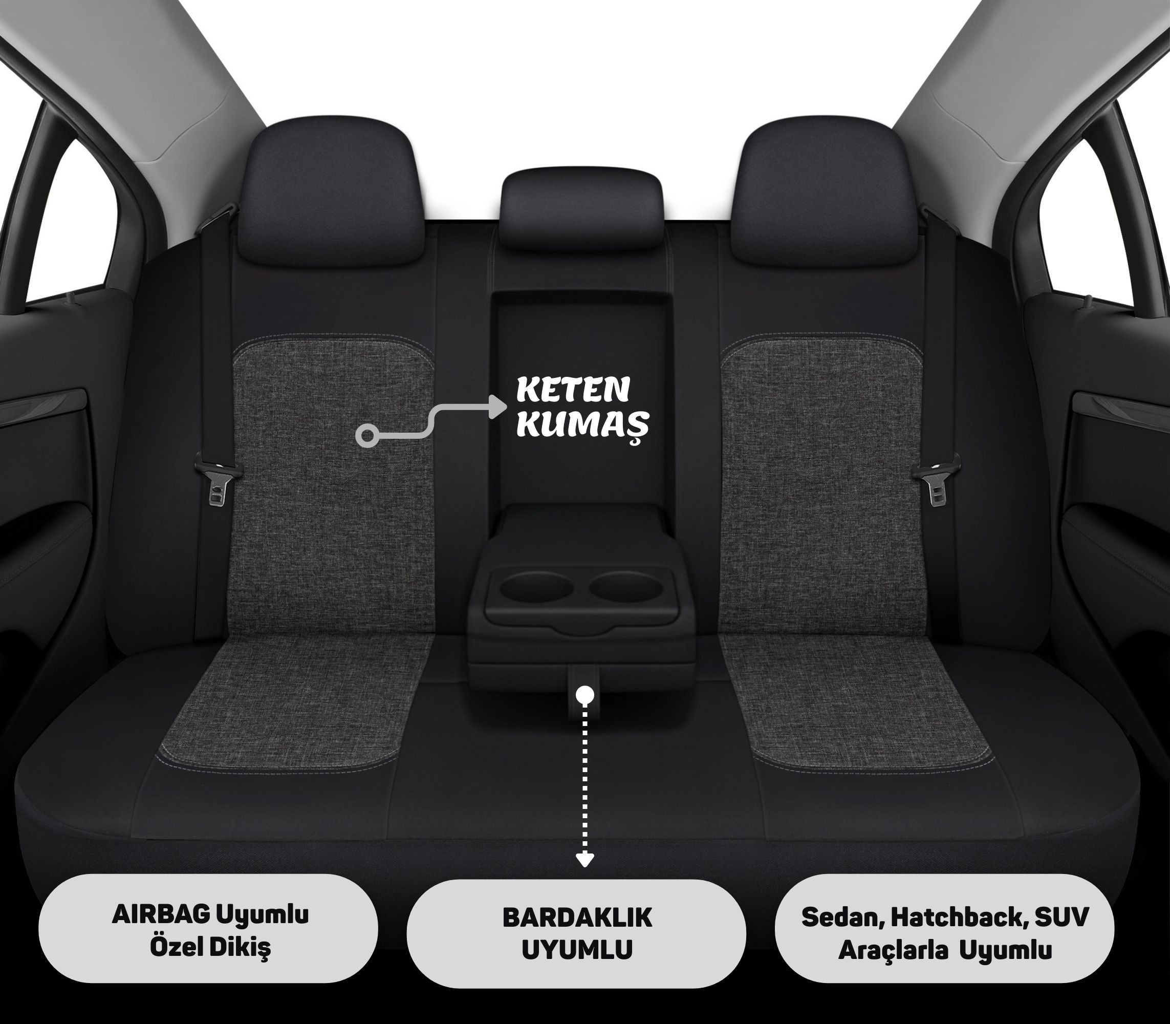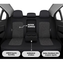 Böylece hem estetik hem güvenli bir kullanım sunar.; Dayanıklı ve nefes alabilen keten kumaş yapısı sayesinde uzun süreli kullanımda konfor sağlar, koltuklarınızı kir, leke ve aşınmalara karşı korur.
