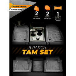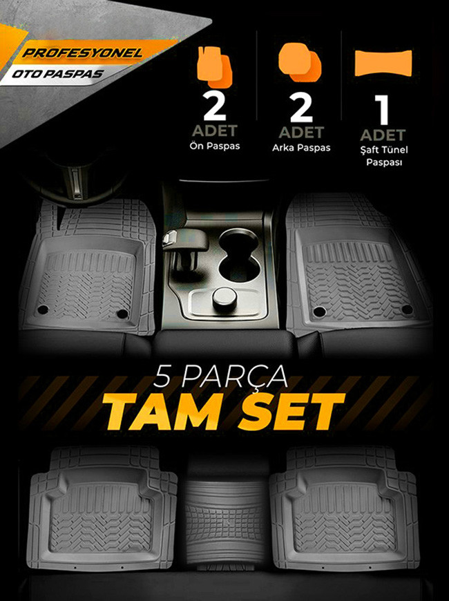 5 parçadan oluşan paspas setimiz bütün binek, hafif ticari ve SUV araçlarla ile uyumludur.